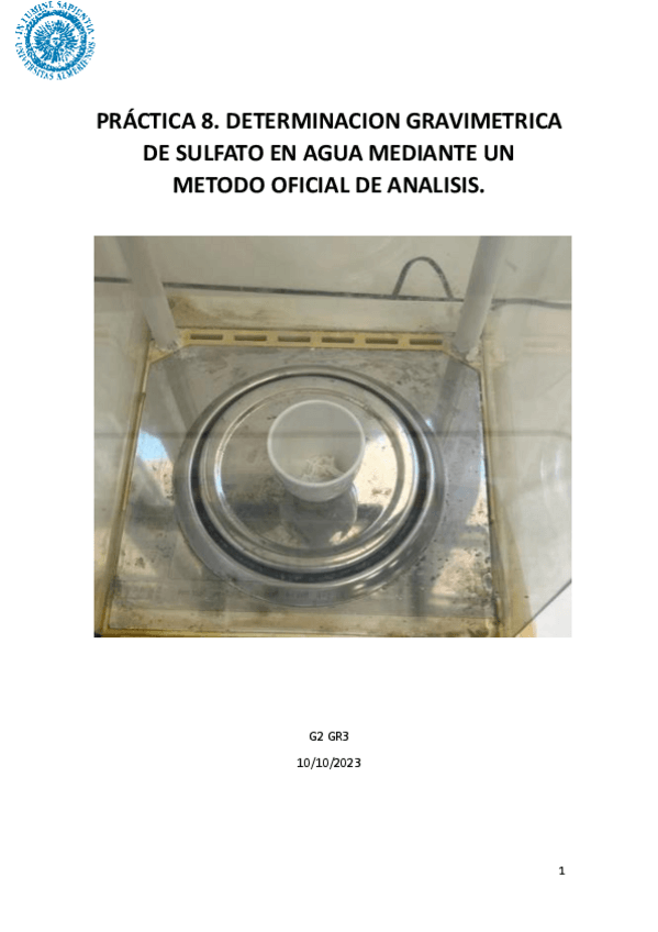 He publicado nuevos practicas de 3º Laboratorio de Química Analítica I: Practica-8.-Determinacion-gravimetrica-de-sulfato-en-agua-mediante-un-metodo-oficial-de-analisis.pdf