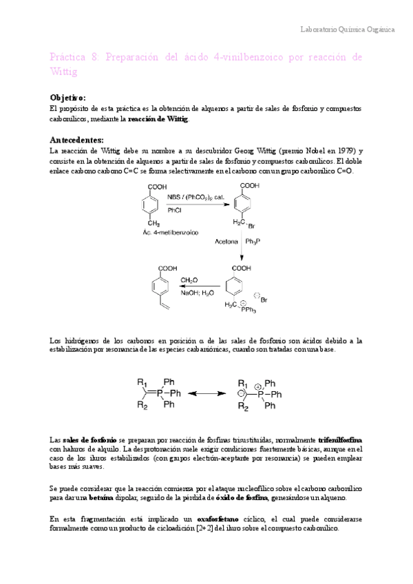 He publicado nuevos practicas de 2º Laboratorio de Química Orgánica: P8-Reaccion-de-Wittig-preparacion-del-ac.-4-vinilbenzoico.pdf