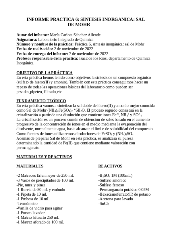He publicado nuevos practicas de 2º Laboratorio Integrado de Química: INFORME PRÁCTICA 6