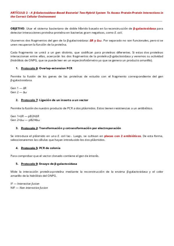 Resumen de los artículos trabajados en el Módulo Molecular Bloque 2