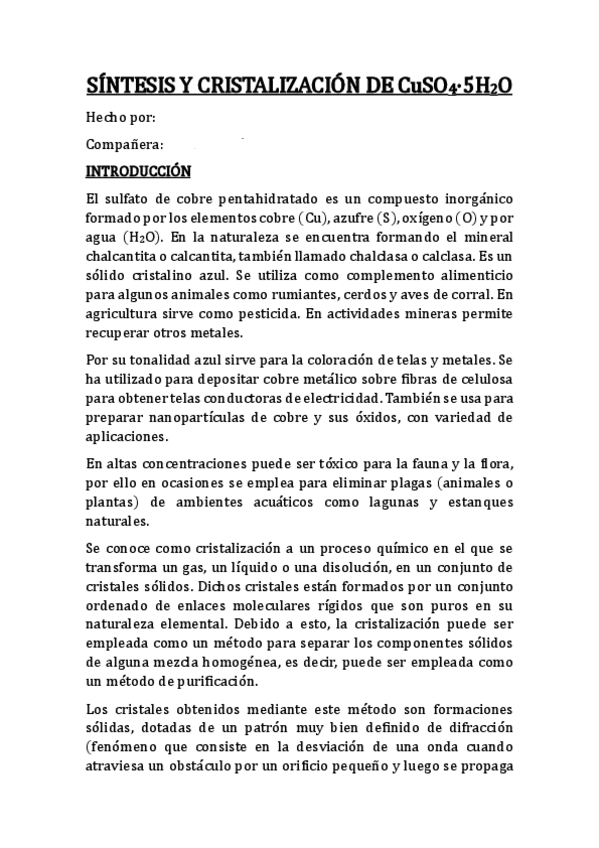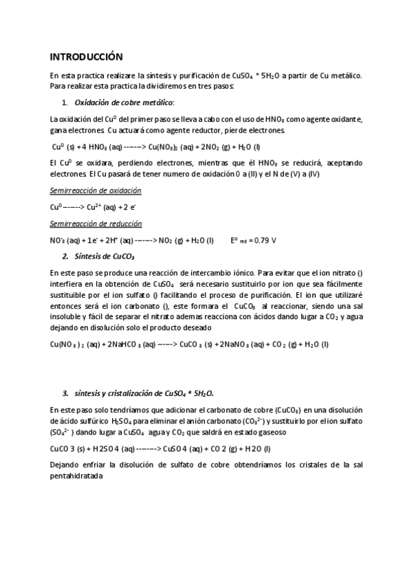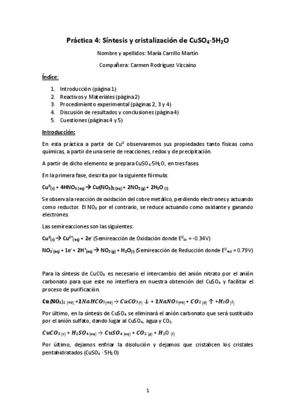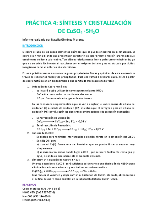 He publicado nuevos apuntes de 1º Laboratorio Químico I: PRACTICA-4-Sintesis-y-cristalizacion-de-CuSO4-5H2O-2.pdf