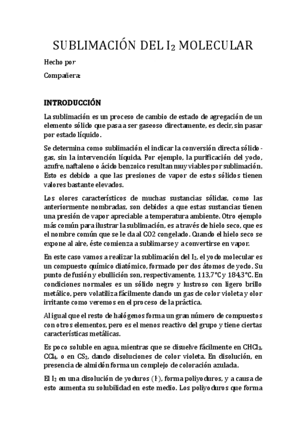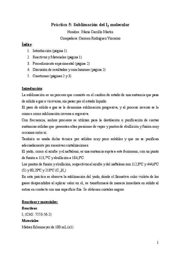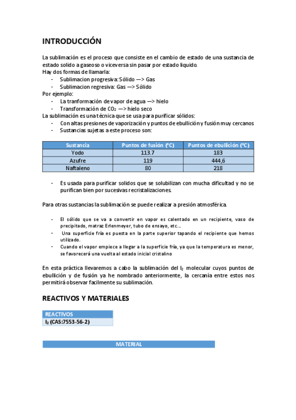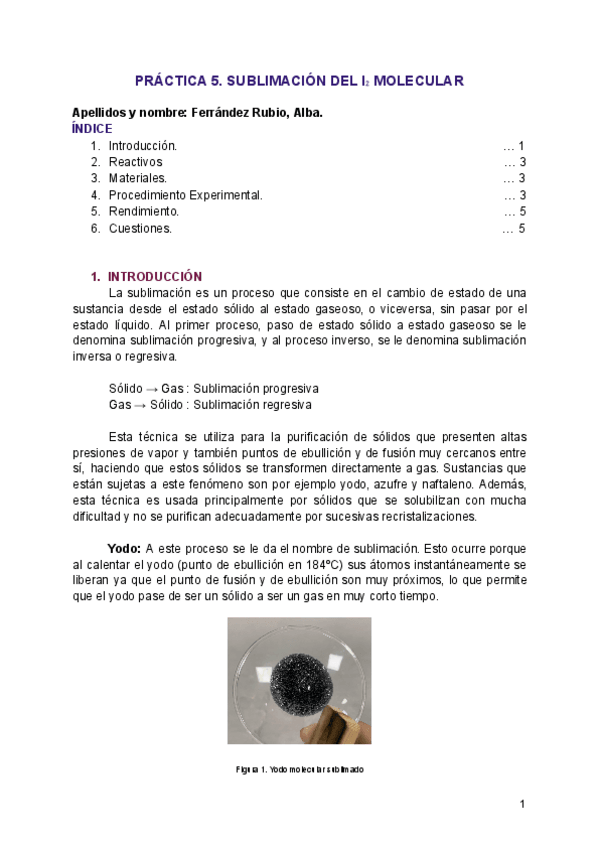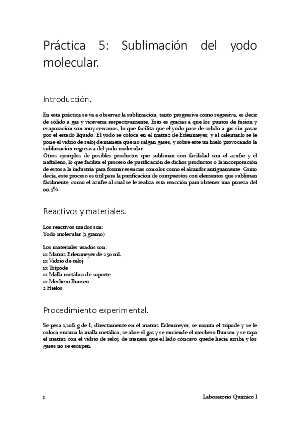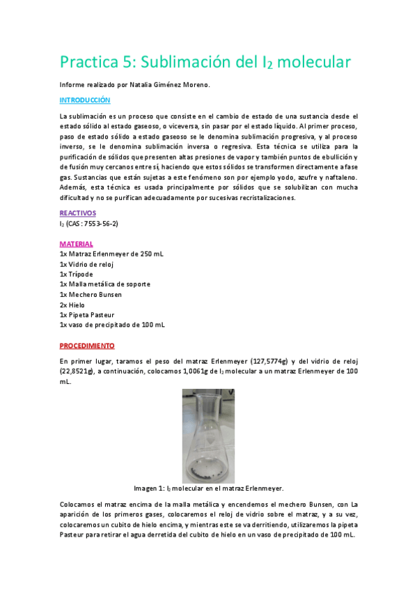 He publicado nuevos apuntes de 1º Laboratorio Químico I: PRACTICA-5-Sublimacion-del-I2-molecular-2.pdf