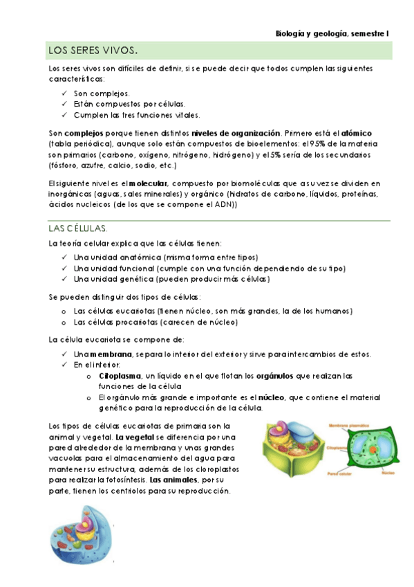 Primer año. Biología y Geología
