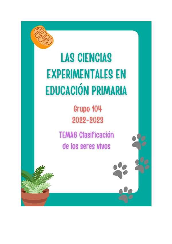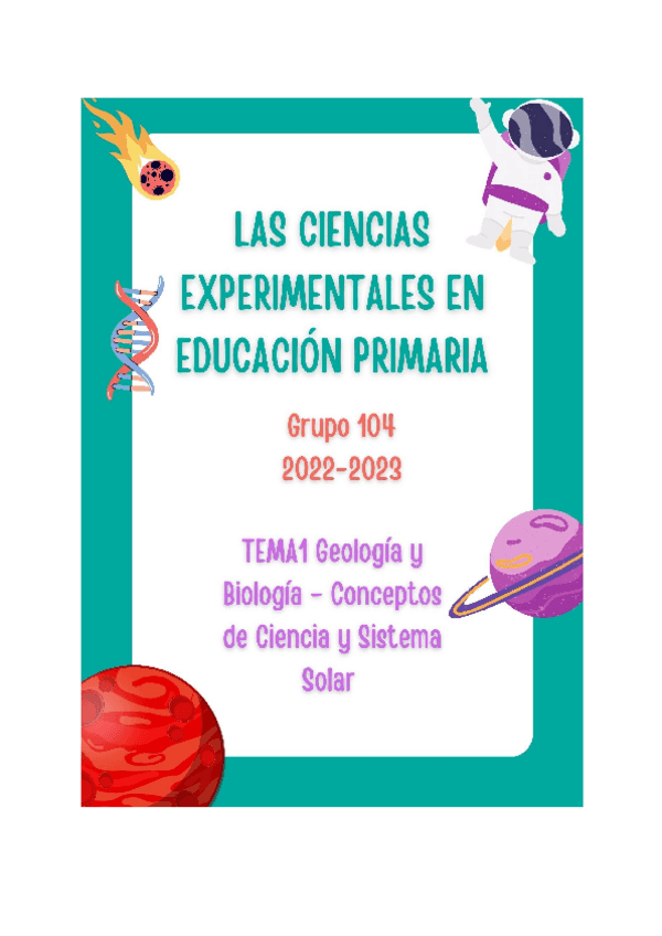 Apuntes de la primera parte (Biología y Geología) de la asignatura de Las Ciencias Experimentales en la Educación Primaria. Asignatura perteneciente al primer cuatrimestre del primer curso del Doble grado de Educación Infantil y Primaria. Específicamente,