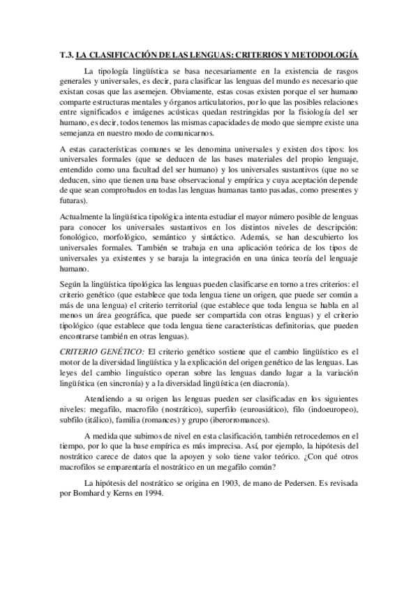 Apuntes CLASIFICACIÓN DE LAS LENGUAS Y UNIVERSALES de Lenguas del Mundo con Salguero.