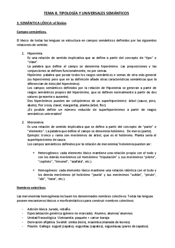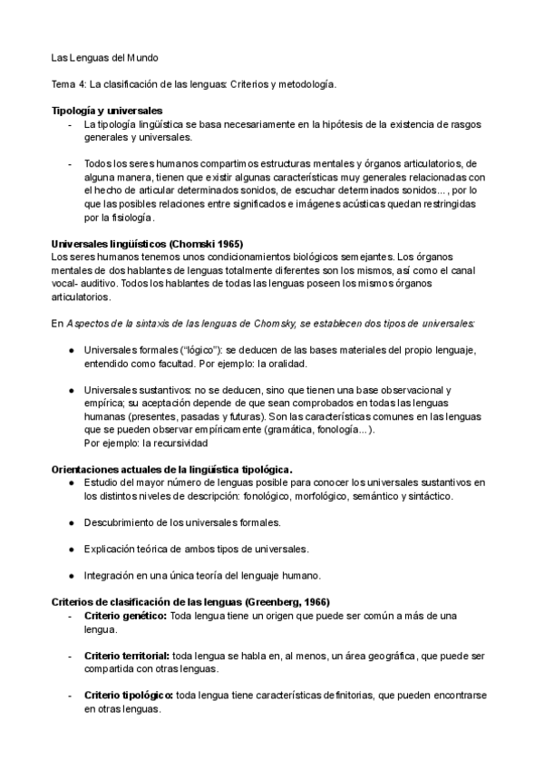 Apuntes CLASIFICACIÓN DE LAS LENGUAS Y UNIVERSALES de Lenguas del Mundo con Salguero.