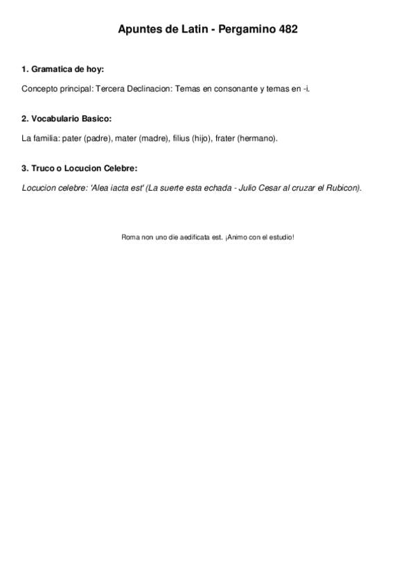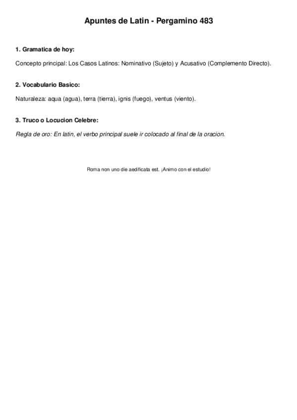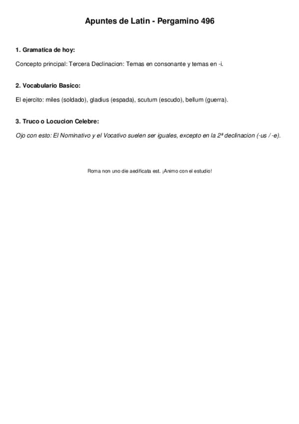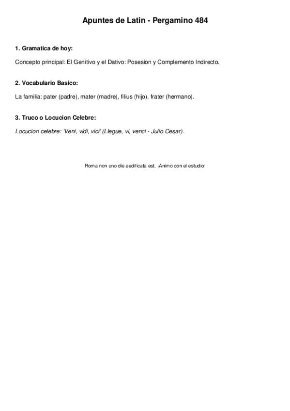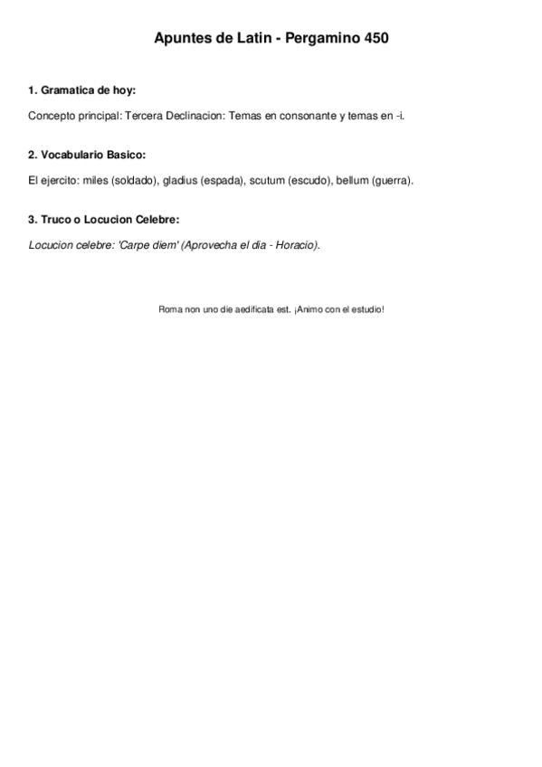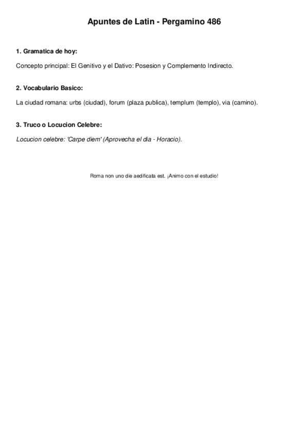 Temario latín 1ºbachiller: declinaciones, verbos de perfecto y presente, la pasiva, determinantes, pronombres enfáticos....