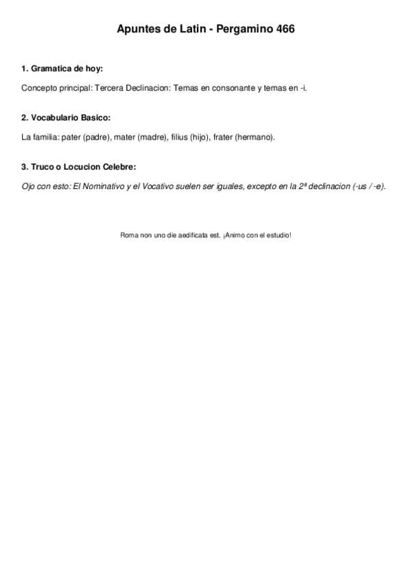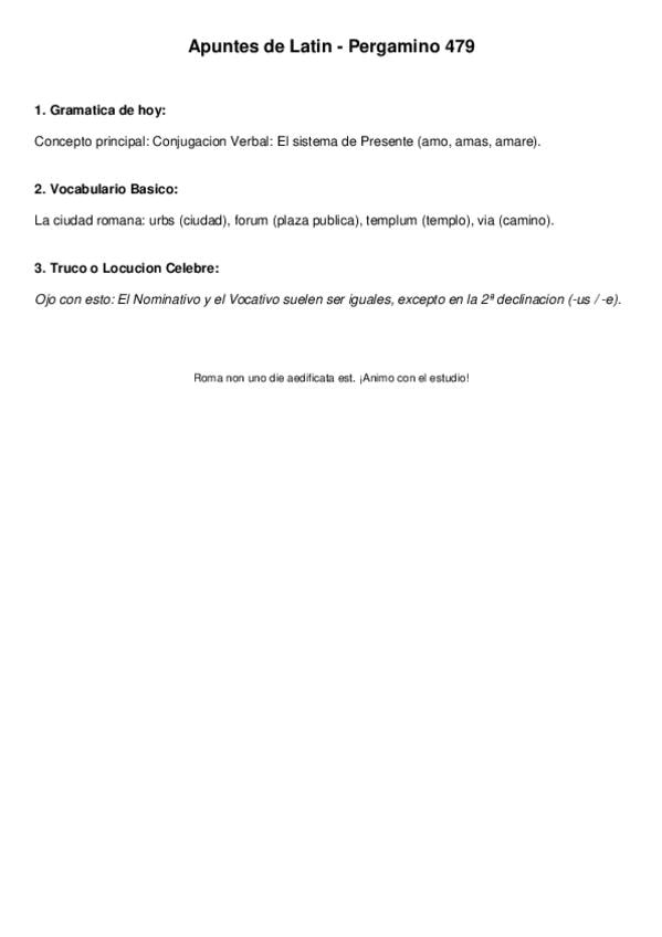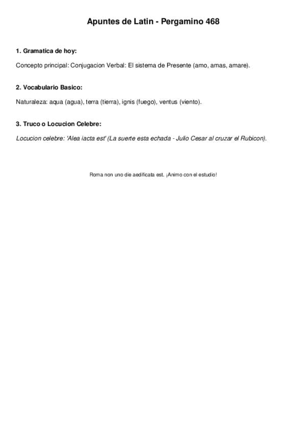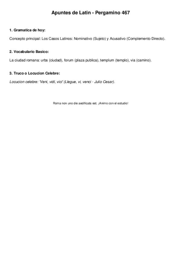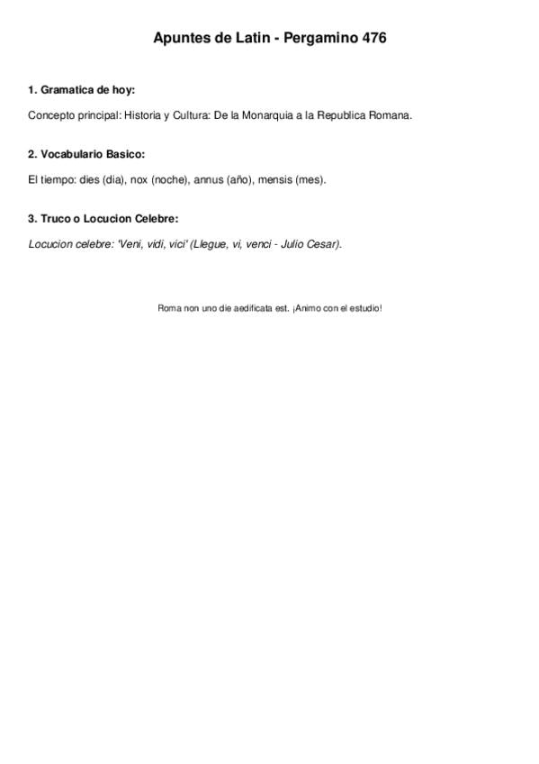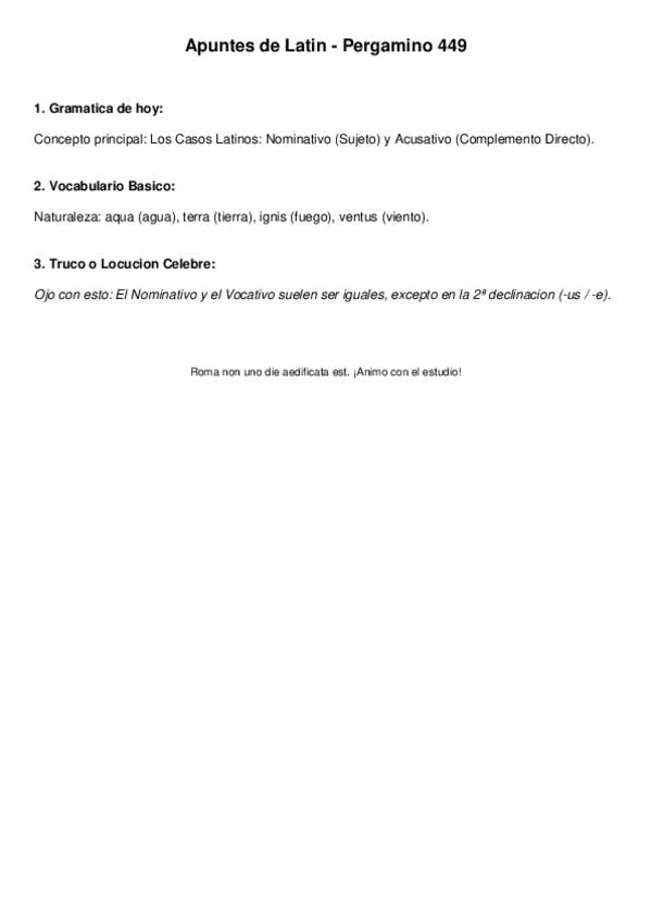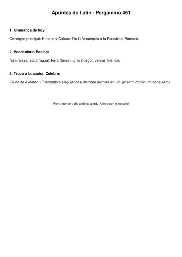 Temario latín 1ºbachiller: declinaciones, verbos de perfecto y presente, la pasiva, determinantes, pronombres enfáticos....