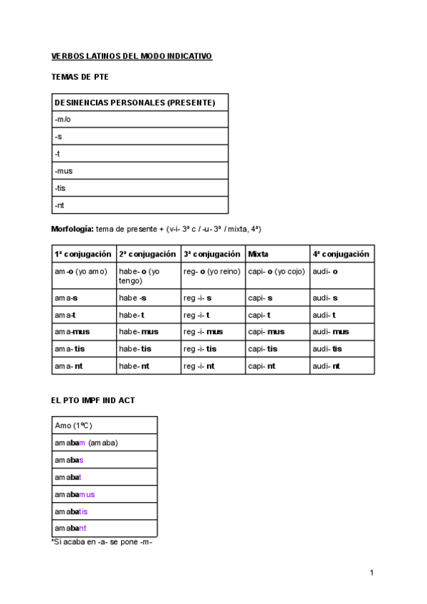 Concepto de lengua flexiva, las funciones de los casos, la primera y segunda declinación+desinencias, el verbo latino, los temas verbales, el presente de indicativo activo, el pretérito imperfecto indicativo activo, tipo de oraciones, el verbo SUM, ESSE,