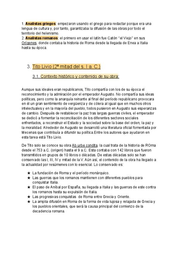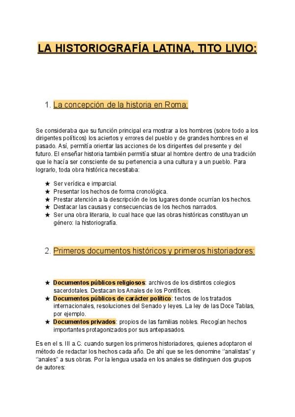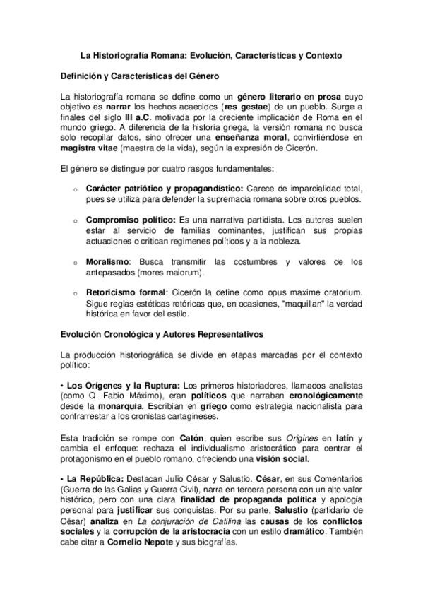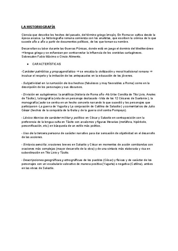 APUNTES LATÍN HISTORIOGRAFÍA (LITERATURA) + AUTORES Y DETALLES TEXTOS