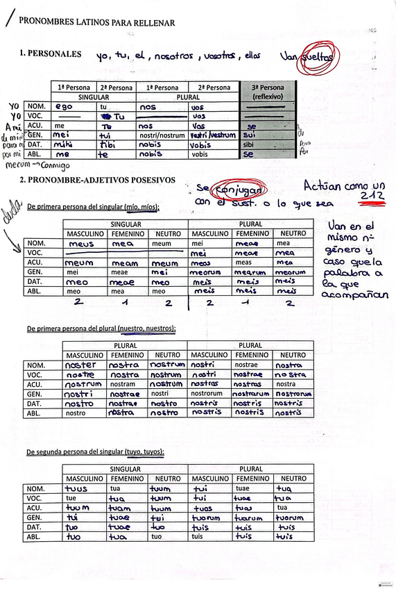 Apunts esquemàtics dels pronoms / determinants demostratius, possessius i personals de la matèria de llatí (2n de Batxillerat)!