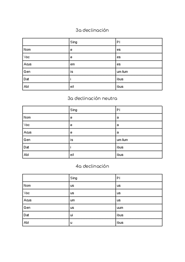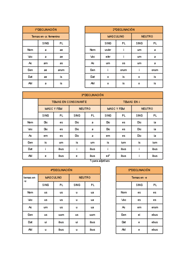 Tercera declinación, preterito imperfecto, futuro simple, adjetivos de segunda clase, quarta declinacion y quinta, preterito perfecto, preterito plusquamperfecto, futuro perfecto.