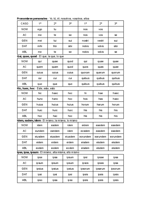 Apuntes pronombres (reflexivos, demostrativos, personales, posesivos...) para bachillerato y PAU.