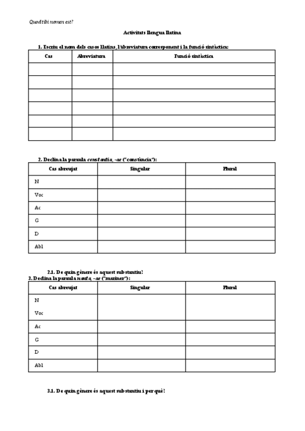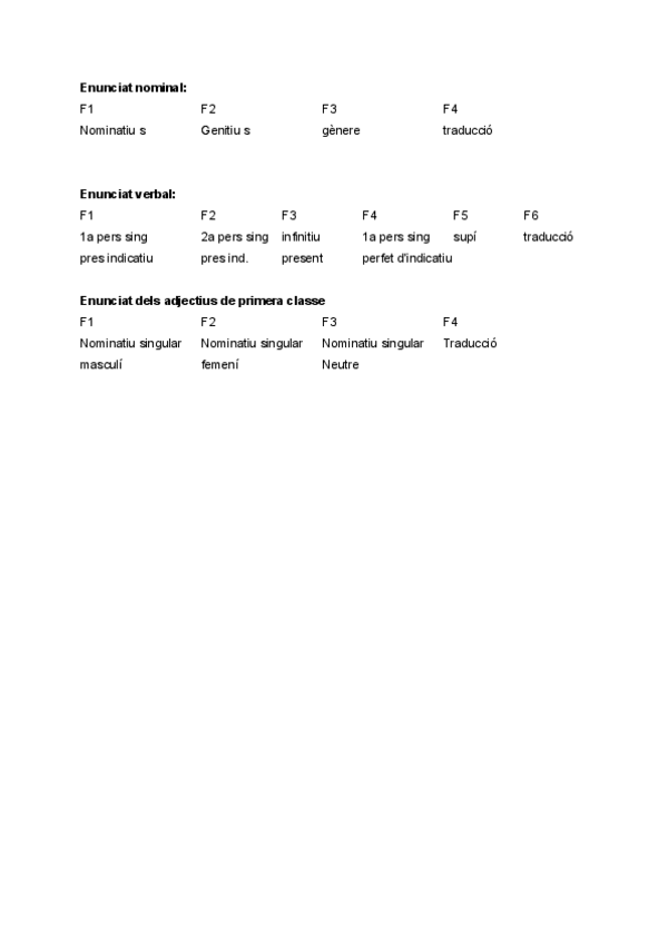 Primera declinación, segunda, adjetivos primera clase, presente de indicativo. Esta en catalán pero las declinaciones son las mismas, así que no debería haber ningún problema.