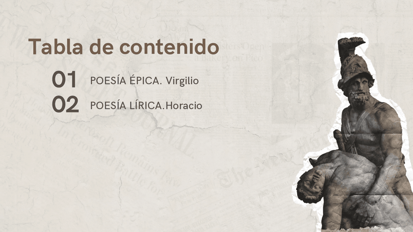 Presentación sobre los dos primeros temas de literatura latina que caen en la PAU de Galicia. Poesía épica (Virgilio) y poesía lírica (Horacio)
