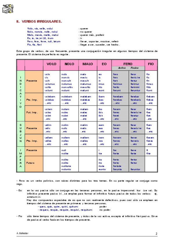He publicado nuevos apuntes de Latín II: LATIN verbos conjugación irregular.pdf