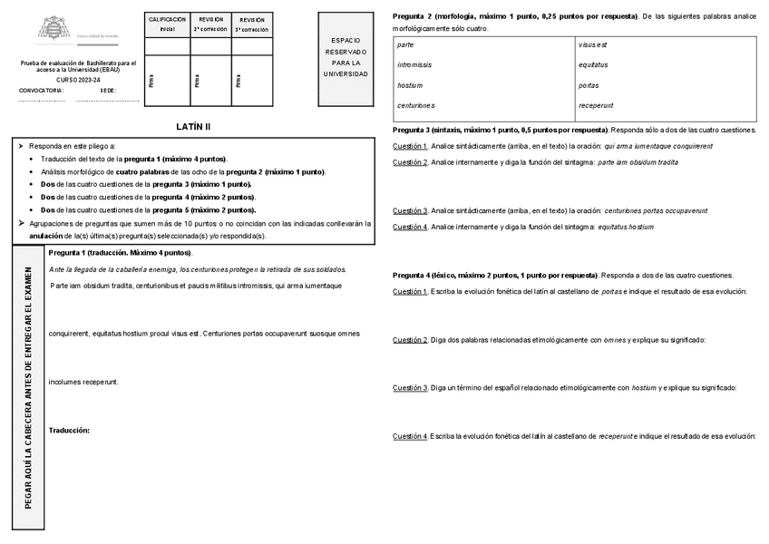Examen EBAU Latín