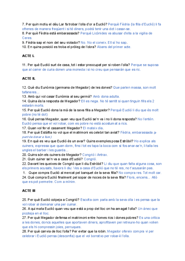 En este documento encontrarás la guía de lectura de la comedia de la olla de plauto