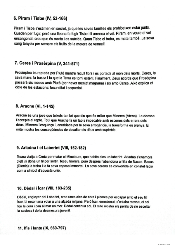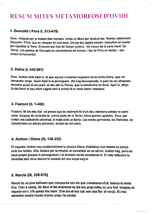 Resum molt breu mites metamorfosi d'Ovidi