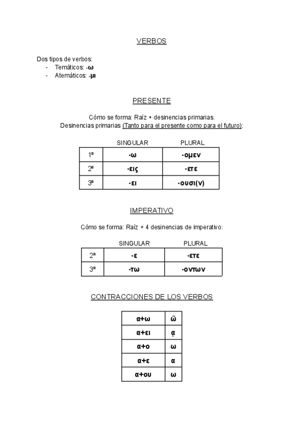 Todos los tiempos verbales: Presente, Imperfecto, Futuro y Aoristo. Su estructura y desinencias