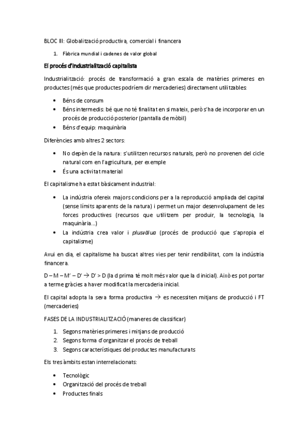 Tema 8: Fàbrica mundial i cadenes de valor global Tema 9: La globalització financera: la financiarització de l’economia mundial i les institucions financeres