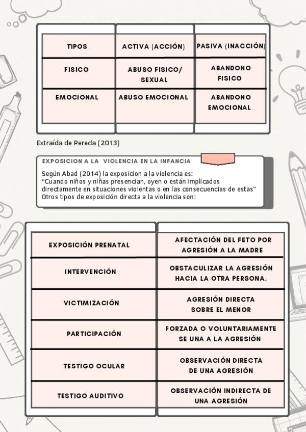 Tipologías de violencia infantil, y Infilio-parental