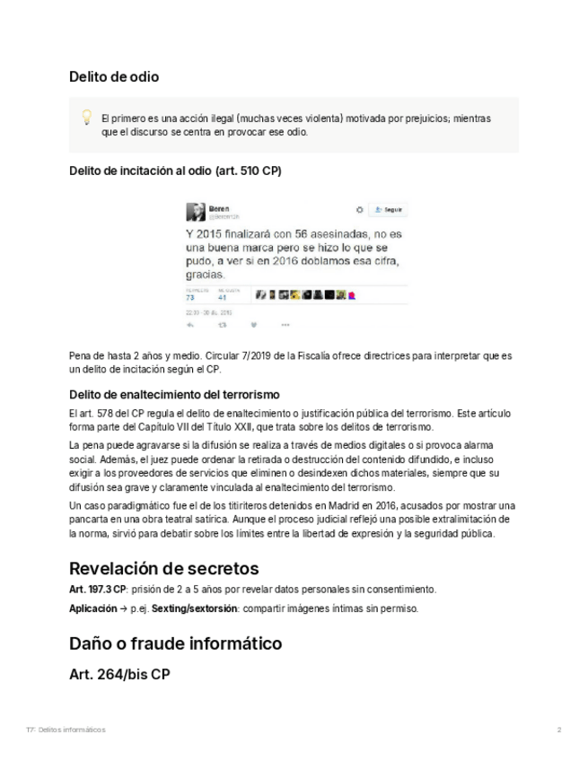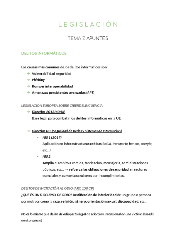 He publicado nuevos apuntes de 3º Legislació: T7delitosinformatico.pdf