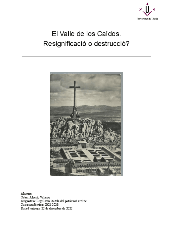 He publicado nuevos apuntes de 3º Legislació i tutela del patrimoni artístic: El-Valle-de-los-Caidos.pdf