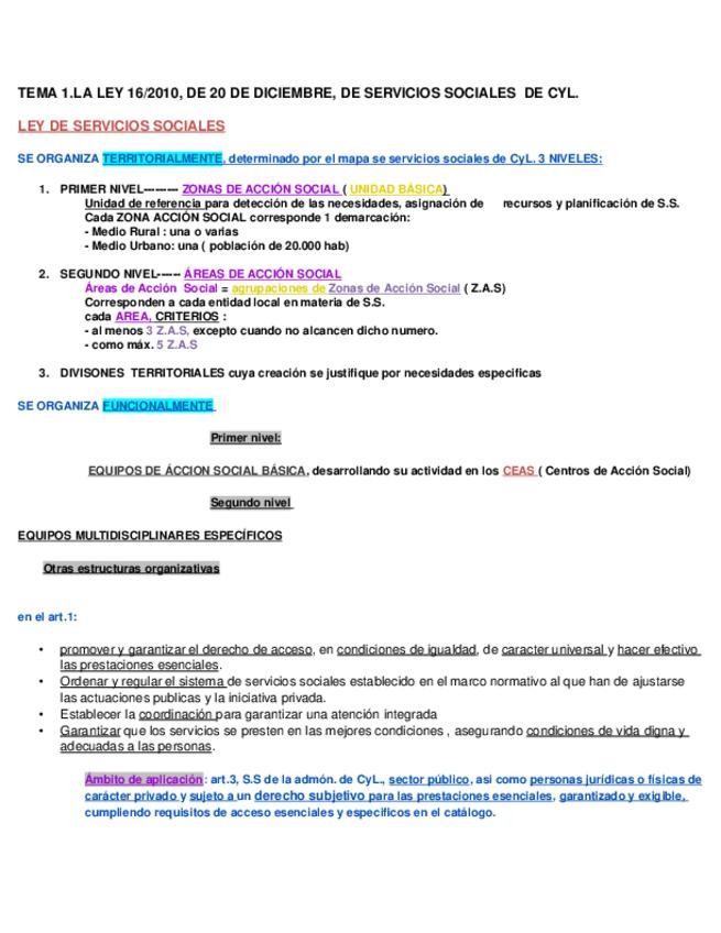 TEMA 1.LA LEY 16/2010, DE 20 DE DICIEMBRE, DE SERVICIOS SOCIALES DE CYL.