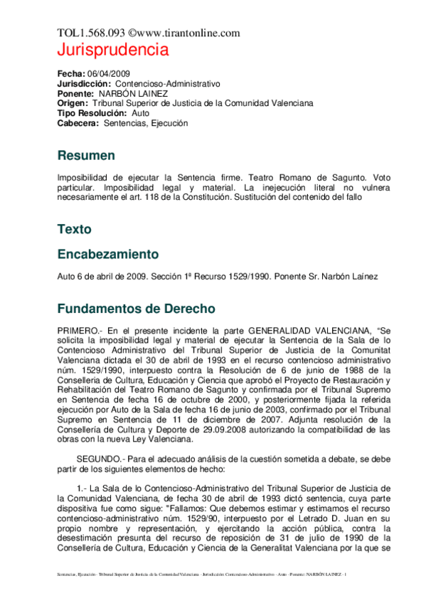 He publicado nuevos otros de 4º Legislación Administrativa Aplicada a la Edificación: Auto TSJ Valencia 2009.pdf