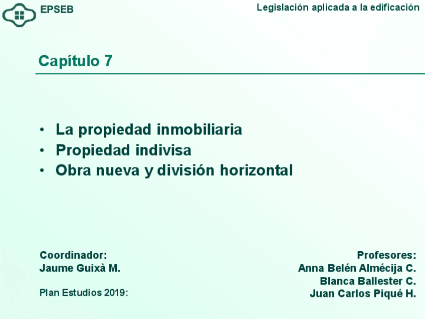 He publicado nuevos apuntes de 2º Legislacion Aplicada a la Edificacion: Tema-7-Propietat-immobiliaria.-Propietat-indivisa.-Obra-nova-i-divisio-horitzontal..pdf