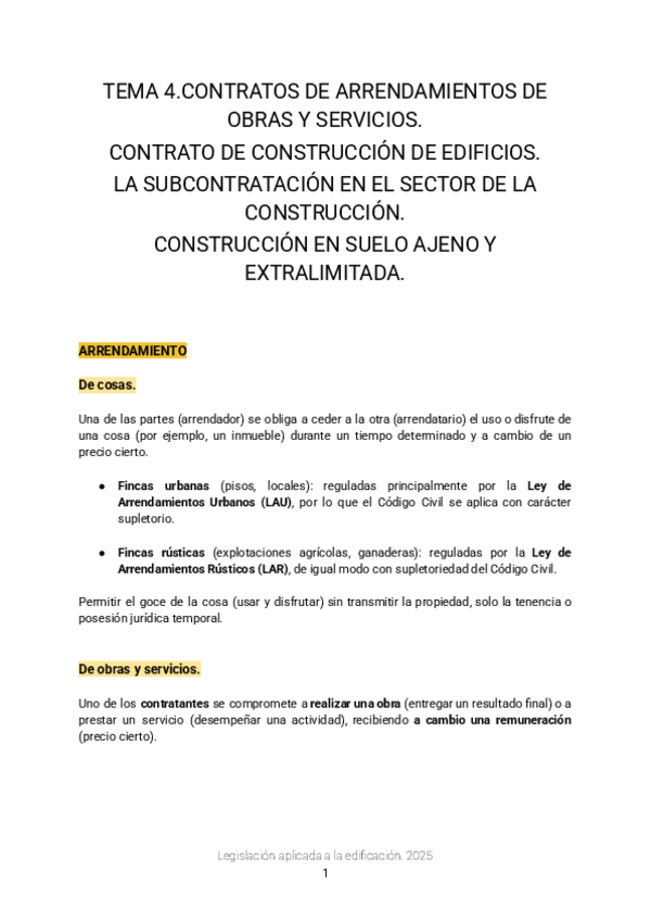 He publicado nuevos apuntes de 2º Legislacion Aplicada a la Edificacion: Tema-4-Contracte-darrendament-dedifici.-Contracte-construccio.-Subcontracte.Construccio-Sol-alie-i-extralimitada..pdf