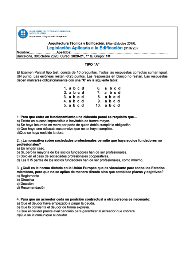 He publicado nuevos examenes de 2º Legislacion Aplicada a la Edificacion: Preguntas-nuevas-final.pdf