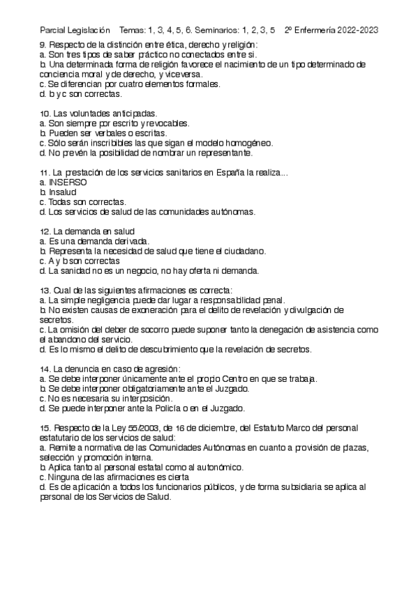 He publicado nuevos examenes de 2º Legislación Sanitaria, Gestión y Administración de Enfermería: PREGUNTAS-PARCIAL-LEGISLACION.pdf