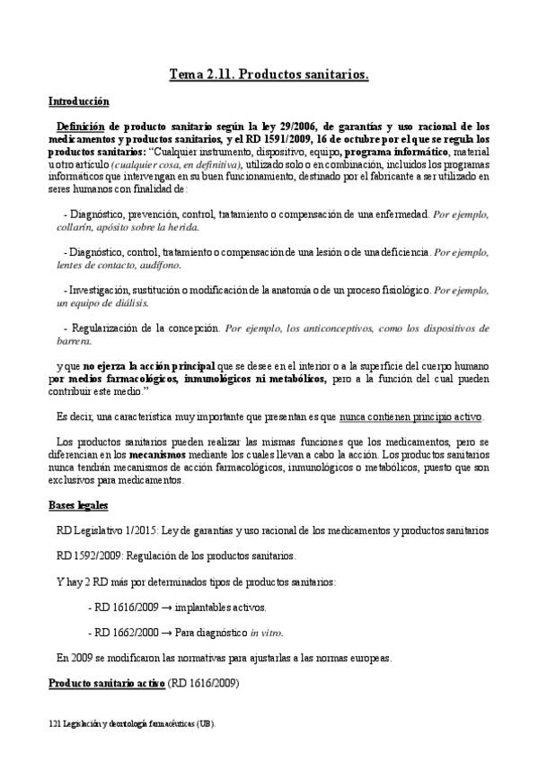 He publicado nuevos apuntes de 3º Legislación y Deontología Farmacéuticas: TEMA-2.13.-PRODUCTES-SANITARIS.pdf