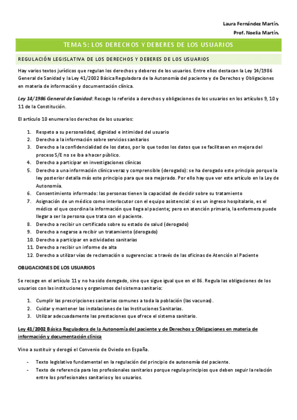 Apuntes y casos clínicos legislación