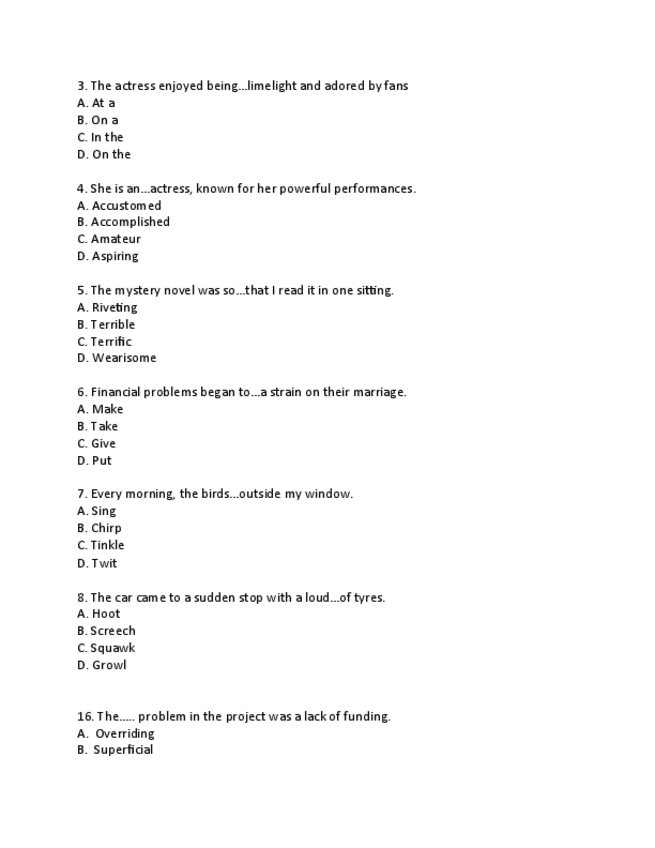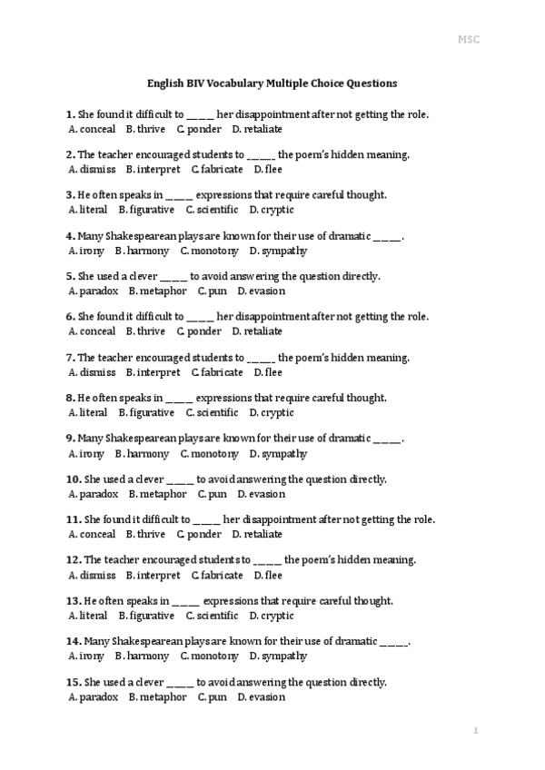 "English BIV Vocabulary Multiple Choice Questions- final exam"