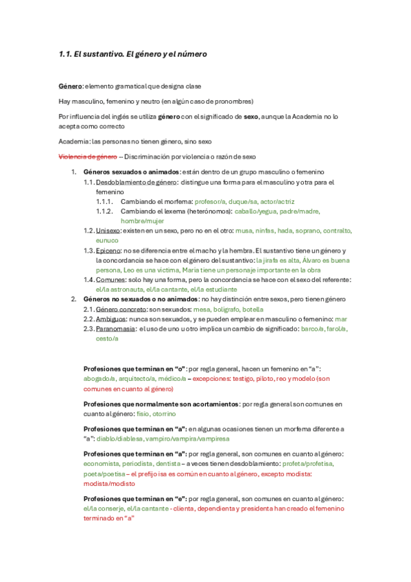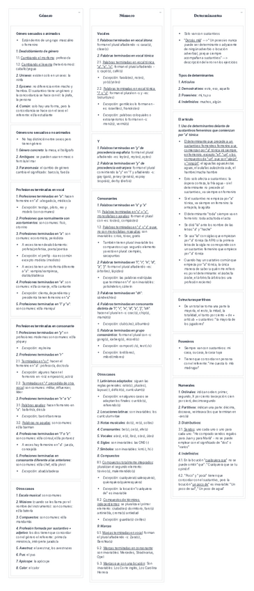 Apuntes de género, número y determinantes para el examen de gramática de Lengua (2024-2025) (Recomiendo leer el resto de los apuntes de lengua de mi perfil porque se complementan) Profesora: Amalia Pedrero