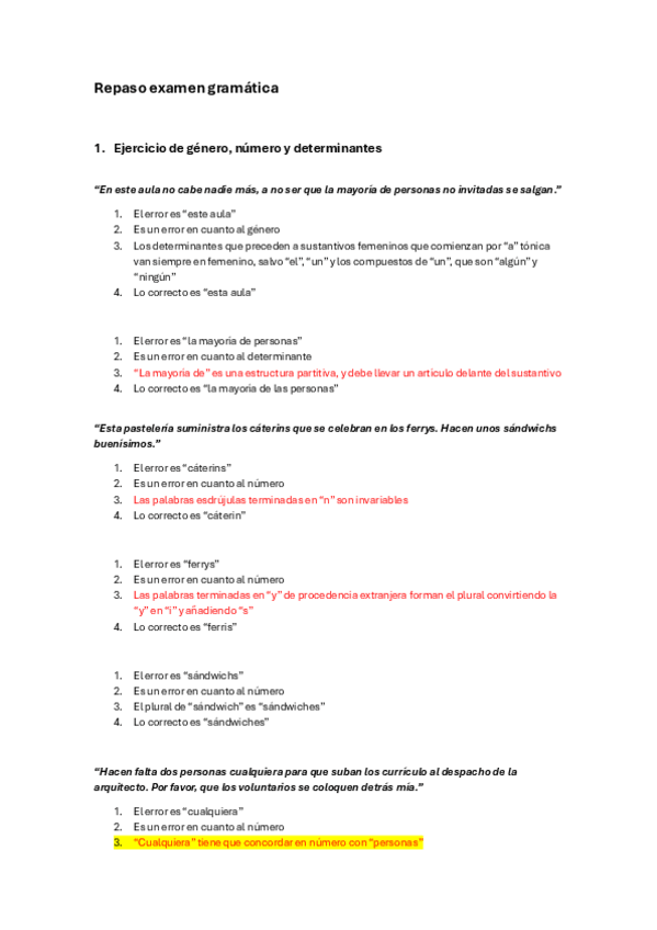 Ejercicios resueltos de gramática de Lengua (2024-2025) (Recomiendo leer el resto de los apuntes de Lengua de mi perfil porque se complementan) Profesora: Amalia Pedrero