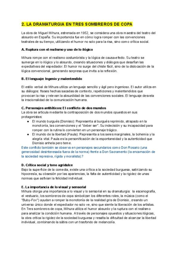 Apunte de literatura de Mihura: Tres sombreros de copa.