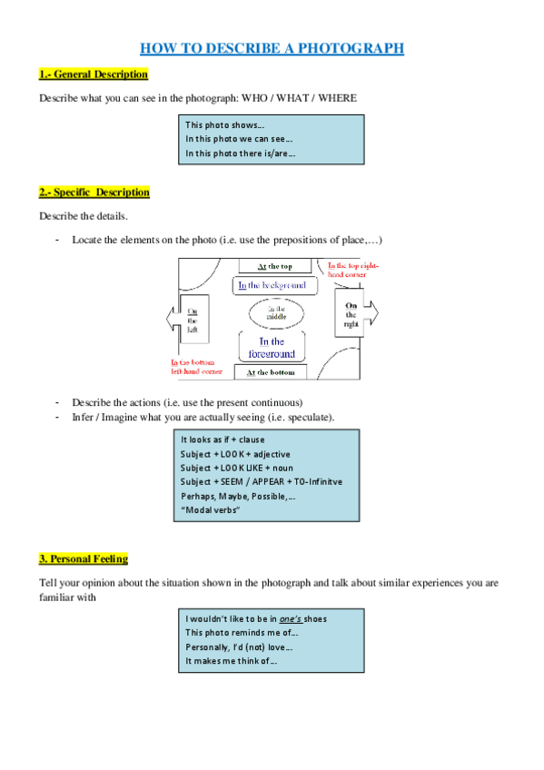He publicado nuevos apuntes de 1º Lengua B I: Inglés: HOW TO DESCRIBE A PHOTOGRAPH.pdf