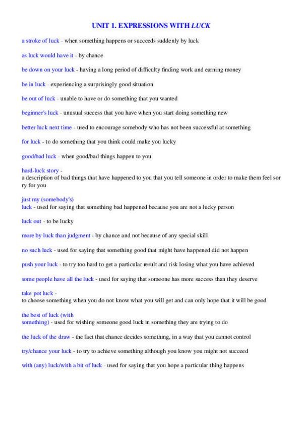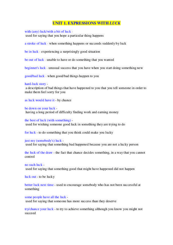He publicado nuevos apuntes de 1º Lengua B I: Inglés: Expressions-with-luck.pdf