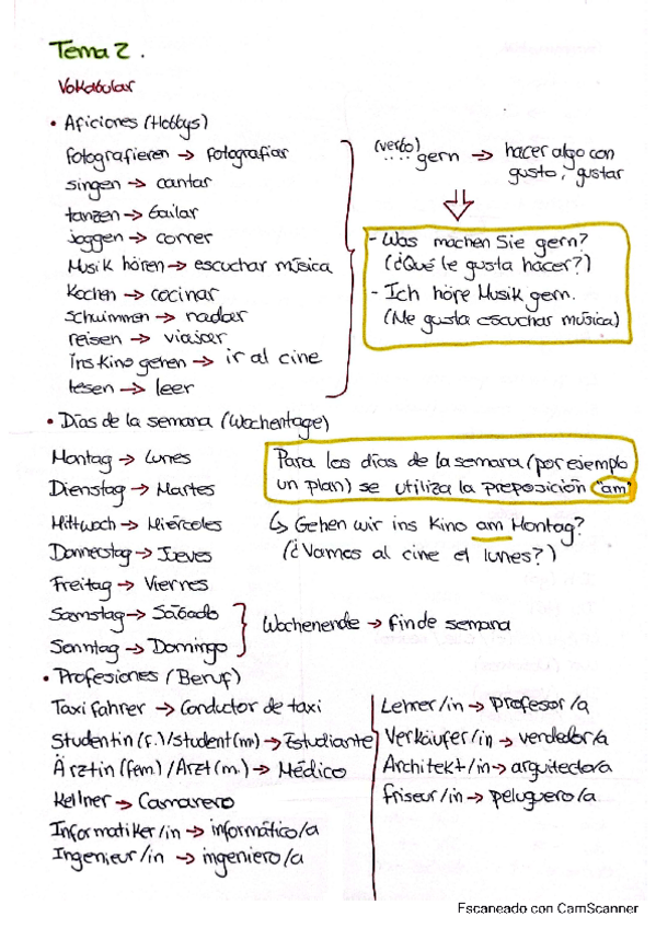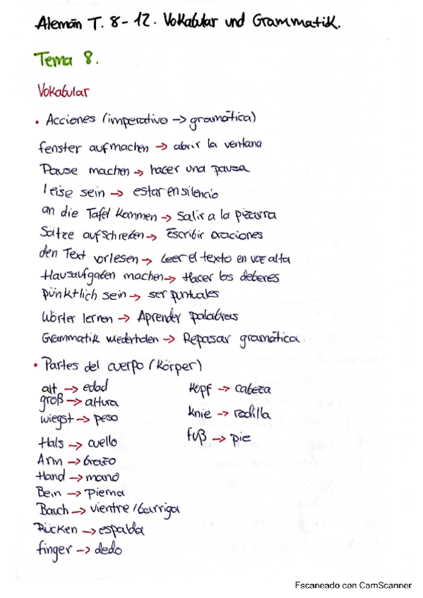 Apuntes completos gramática y vocabulario de Alemán CI