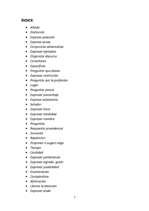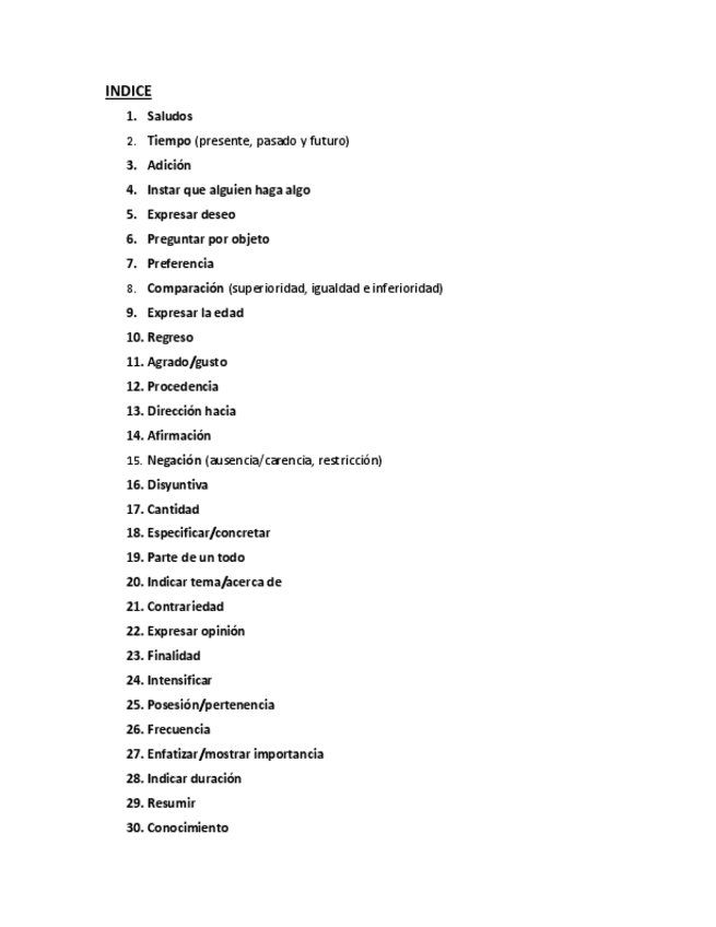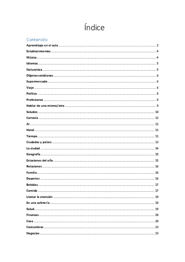 Incluye gramática, preposiciones, vocabulario e intenciones comunicativas.