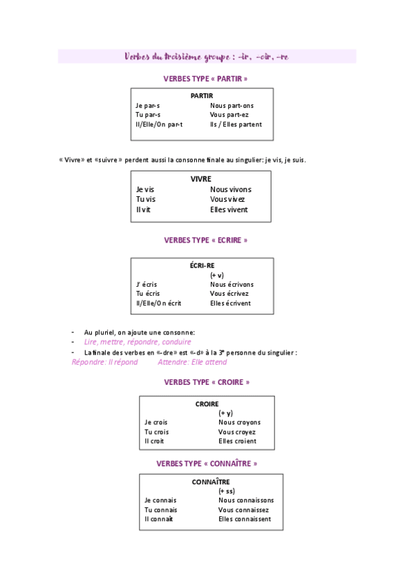 Este documento PDF contiene TODOS los tiempos verbales conjugados de cada grupo verbal en la lengua francesa