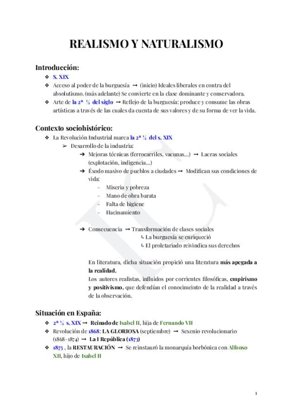 Mapa mental sobre el Realismo y Naturalismo Español. Incluye autores y obras