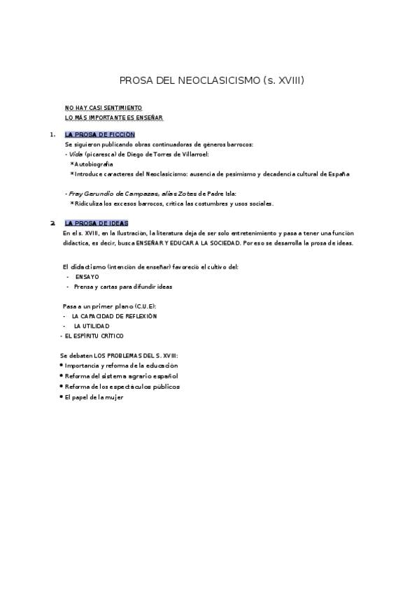 Prosa del neoclasicismo/Romanticismo/Poesía romanticismo/ Prosa romanticismo/ Teatro romanticismo