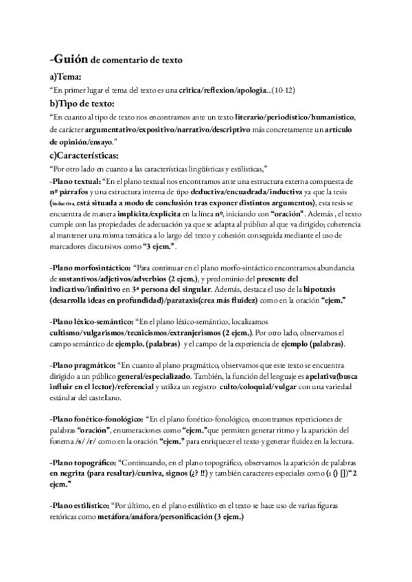 guion de comentario de texto con todos los planos, ejemplos y tipos