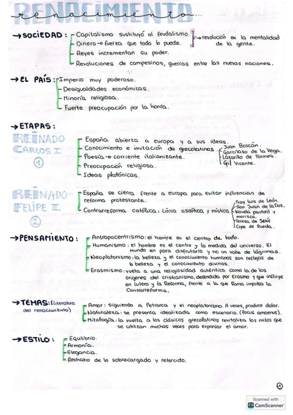 Apuntes sobre la Lírica Renacentista. Incluye: tópicos literarios (subrayados los importantes del Renacimiento, ya que aparecen muchos y muy generales), figuras retóricas, contexto histórico del Renacimiento en Europa, petrarquismo, temas principales, 1er