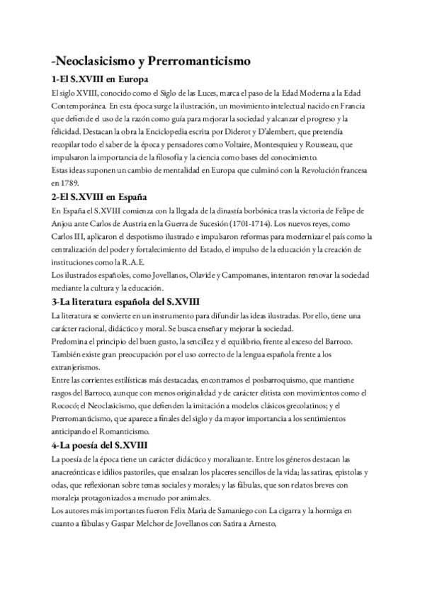 tema de literatura del neoclasicismo y prerroamnticismo, el sigloXVIII, con contexto, poesia, prosa y teatro
